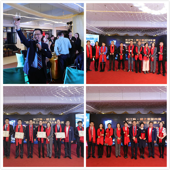 本次聯歡會在各類先進頒獎中穿插了員工的精彩表演,展現了長江脈職工積極向上的生活態度。先進頒獎以個人和團隊分類進行,共計頒發了團隊、個人、比賽三大板塊總計16項大獎。其中,個人獎項包括忠誠度、正能量、管理效率、格盡職守、創新成就、價值創造、市場銷售、個人全能大獎,總計35位長江脈員工分別獲獎。團隊獎項包括凝聚力量、發展力量、創新力量、價值創造力、全能團隊大獎,總計8個團隊獲此殊榮。同時還頒發了精誠合作大獎(經銷商、供貨商)、長江脈·健之素第四屆“迎難而進”演講大賽、長江脈·健之素 “逆勢而上”詩朗誦大賽的獎項。