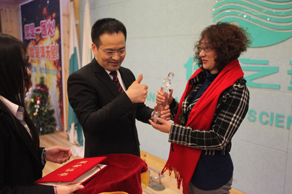 戴彥榛董事長親自為“長江脈2012年度人物獎”得主--楊莉頒獎