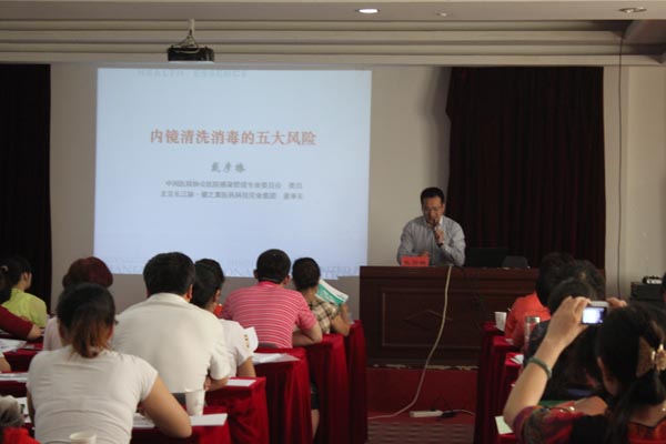 2012年5月18日至23日,由中華預防醫學會消毒分會舉辦的“全國內鏡清洗消毒與感染控制新進展高級培訓班”第一期在北京銀都酒店隆重召開,北京長江脈醫藥有限責任公司受邀參加本次活動,戴彥榛董事長發表了題為《內鏡清洗與消毒的五大風險》的主旨演講。